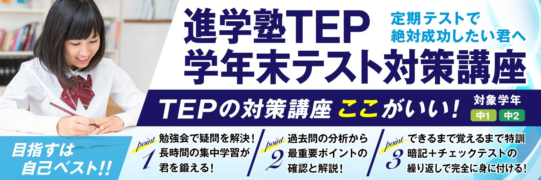 学年末テスト対策に!TEP個別の4回パック授業