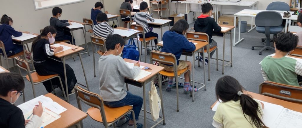写真は低学年の受験の様子ですが、真剣そのものです。周りに知らない生徒もいて、緊張もあったでしょう😀