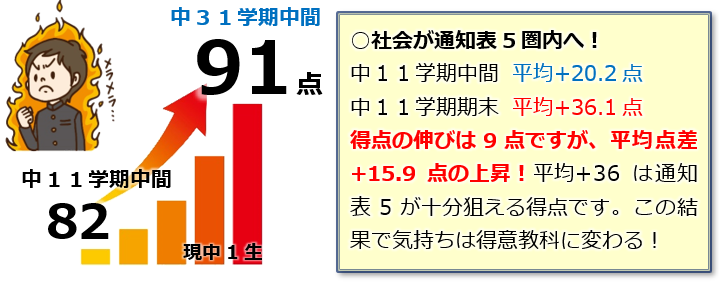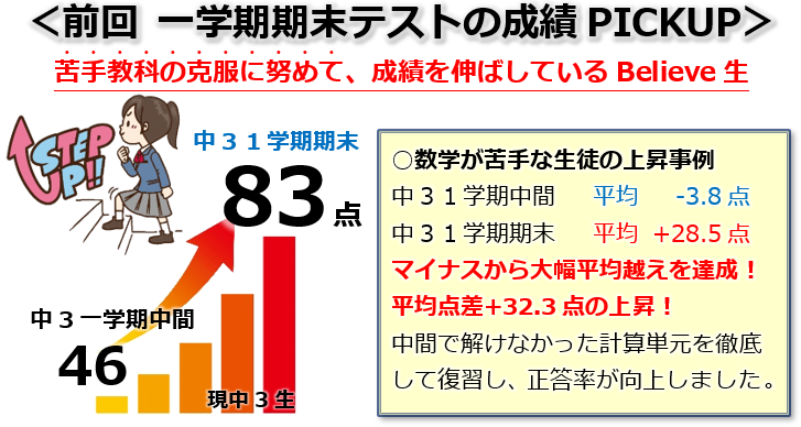 前回から大きく得点を伸ばした生徒も一部ご紹介します。