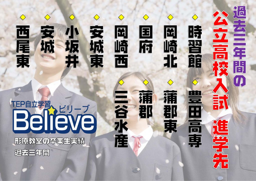 大人数を抱える教室ではないため、Believeでは生徒一人ひとりの志望校合格を応援しています。
