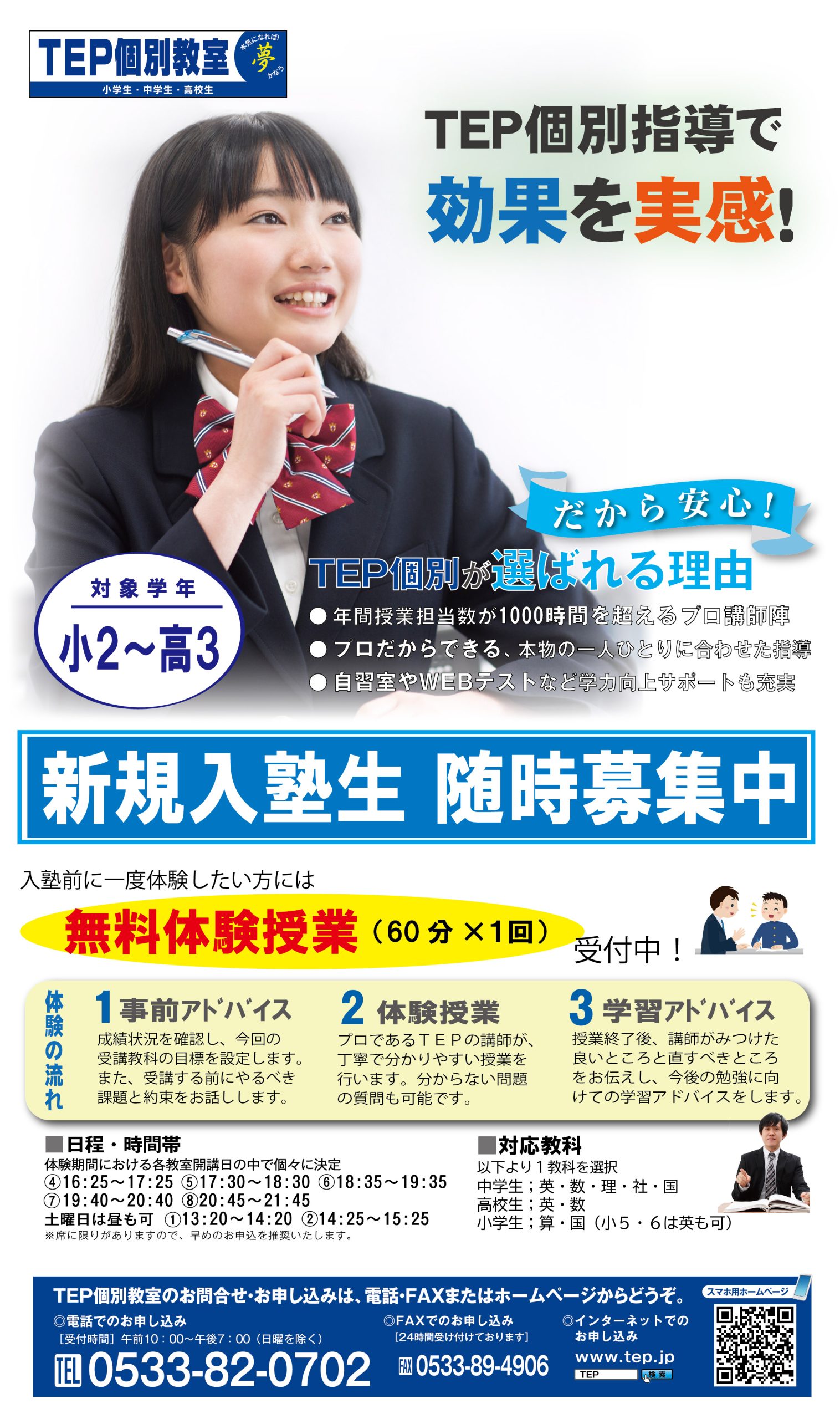 公立高校入試へのラストスパート!TEP個別の入試サクセス講習