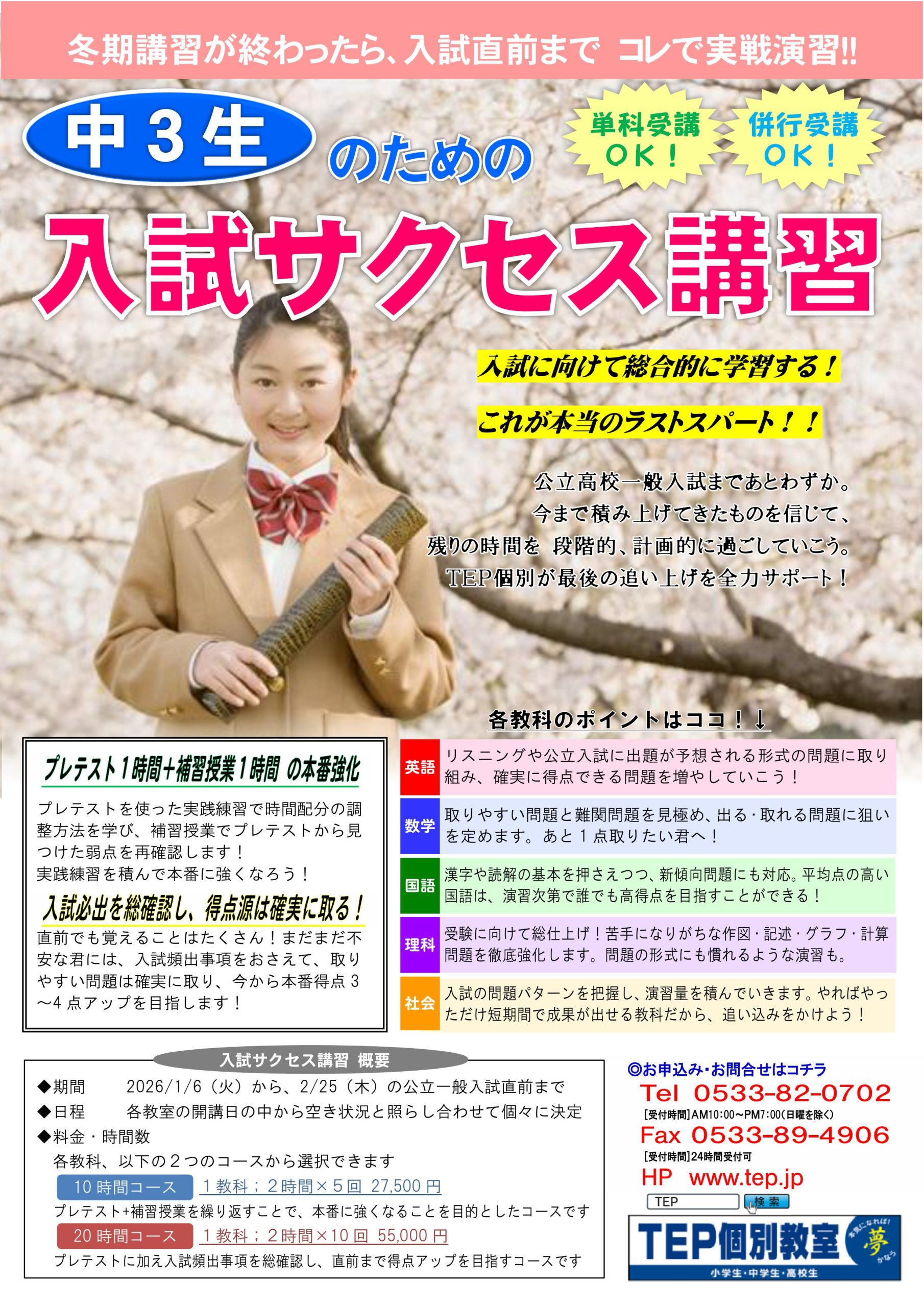 公立高校入試へのラストスパート!TEP個別の入試サクセス講習