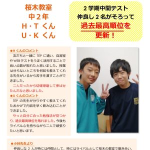 2学期の中間テストでさらにジャンプアップした生徒をご紹介します!
