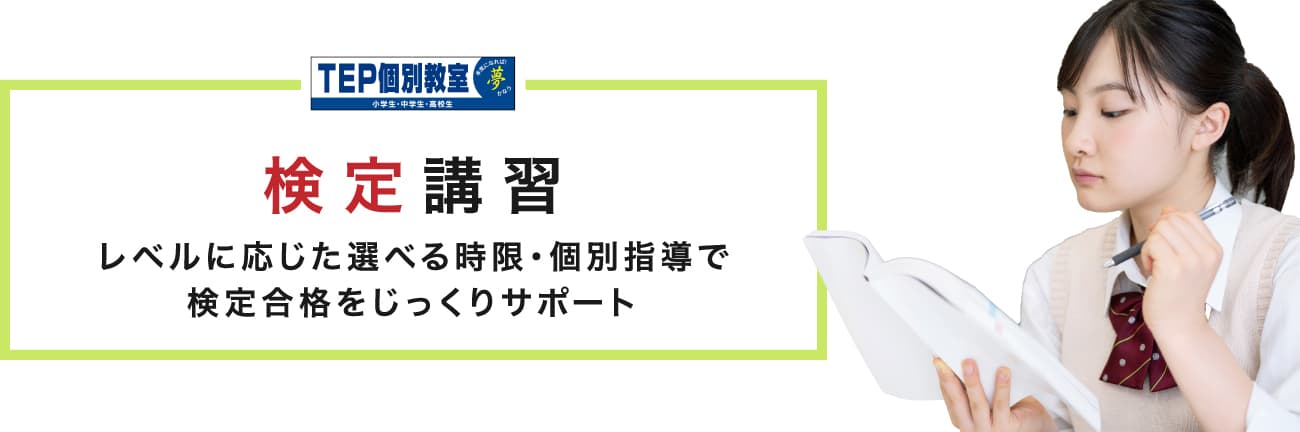 TEP個別の検定講習は、専任講師が個々のレベルに合わせてじっくりと受検生を合格へ導いていきます。