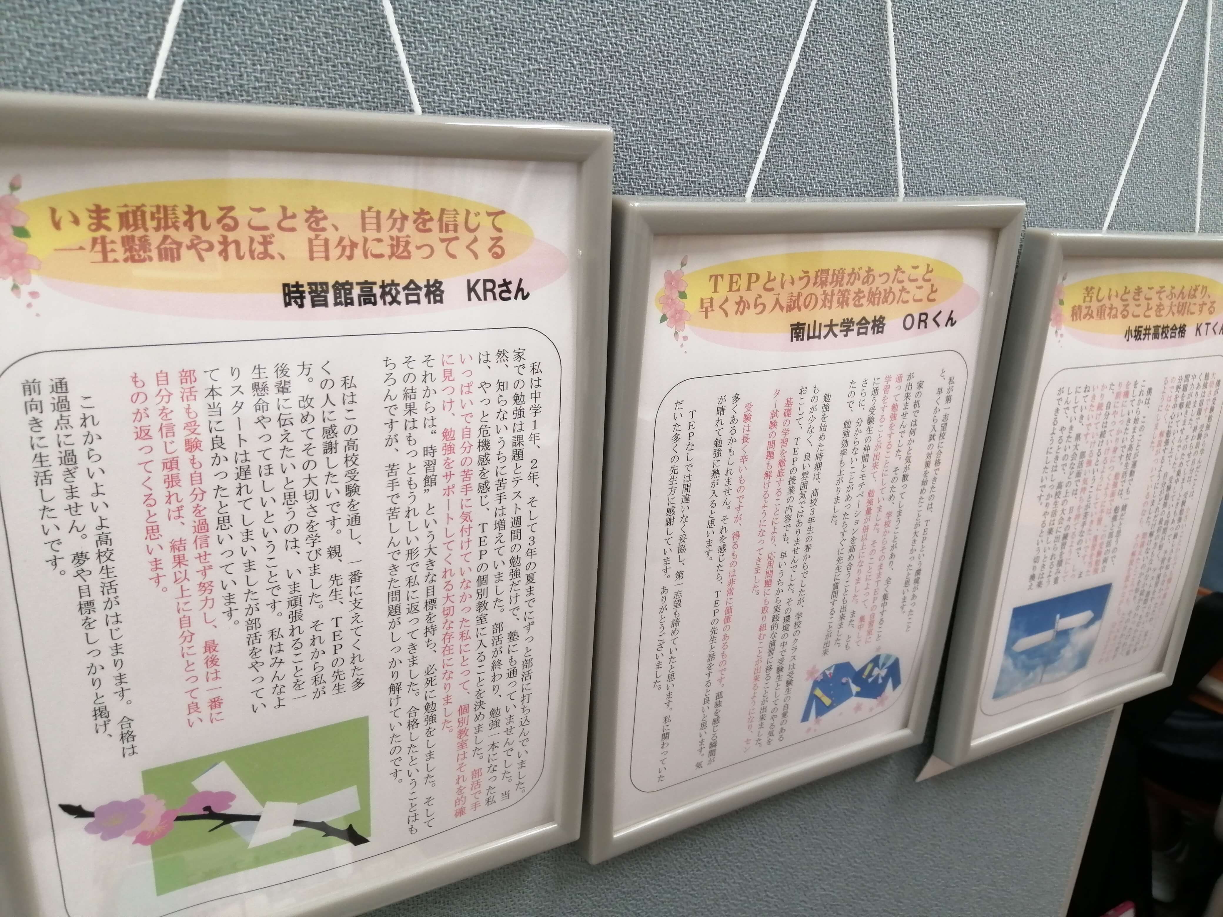 A. "数学の授業ではチャートを取り入れながら取り組み、数学の解法などに沢山ふれて問題に慣れる事ができ、とても良かったです。 TEPはすごくアットホームな雰囲気で、すごく勉強がはかどりました。とても良い環境で勉強できたと思うのですごく感謝しています"