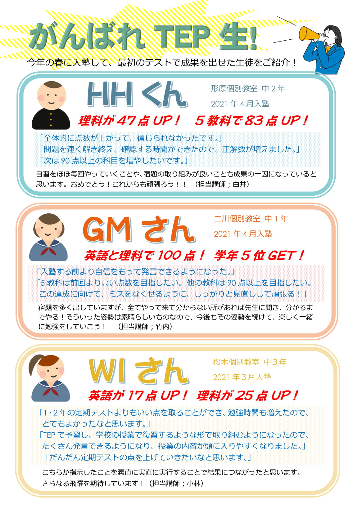 今年の春に入塾した生徒の中から、5月から6月頭にかけてのテストで成果を出せたという声を一部ご紹介します!