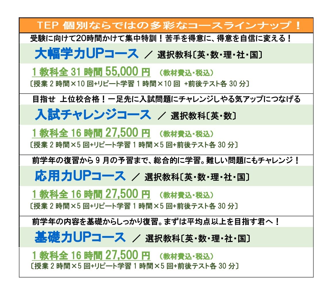 TEP個別の夏期講習は