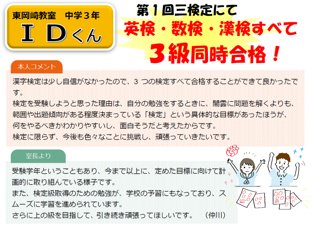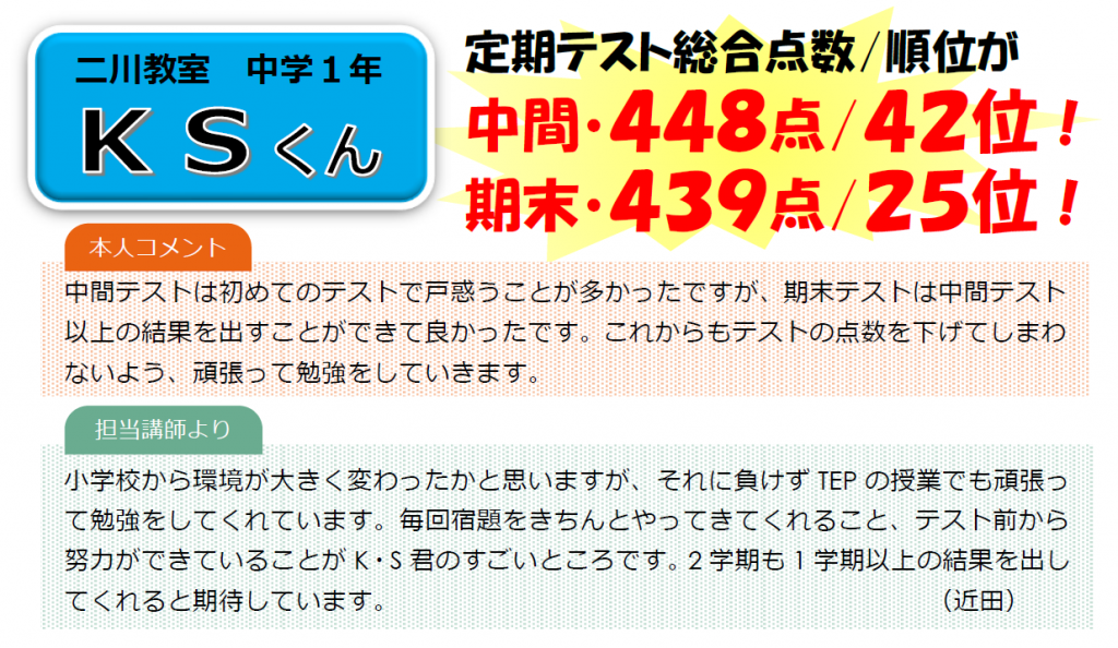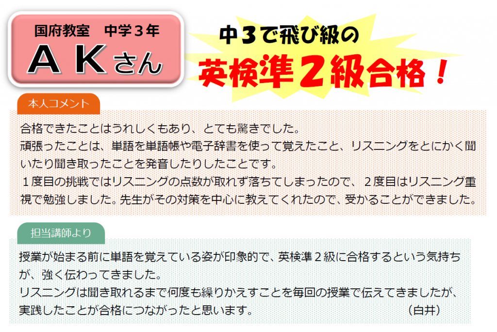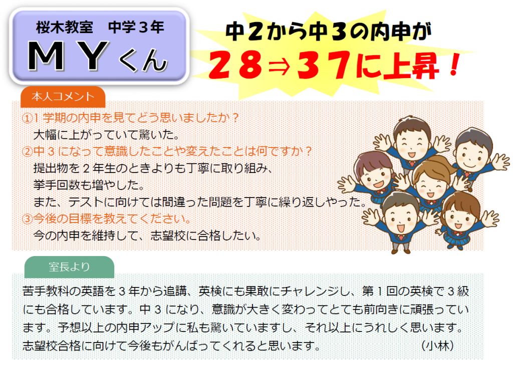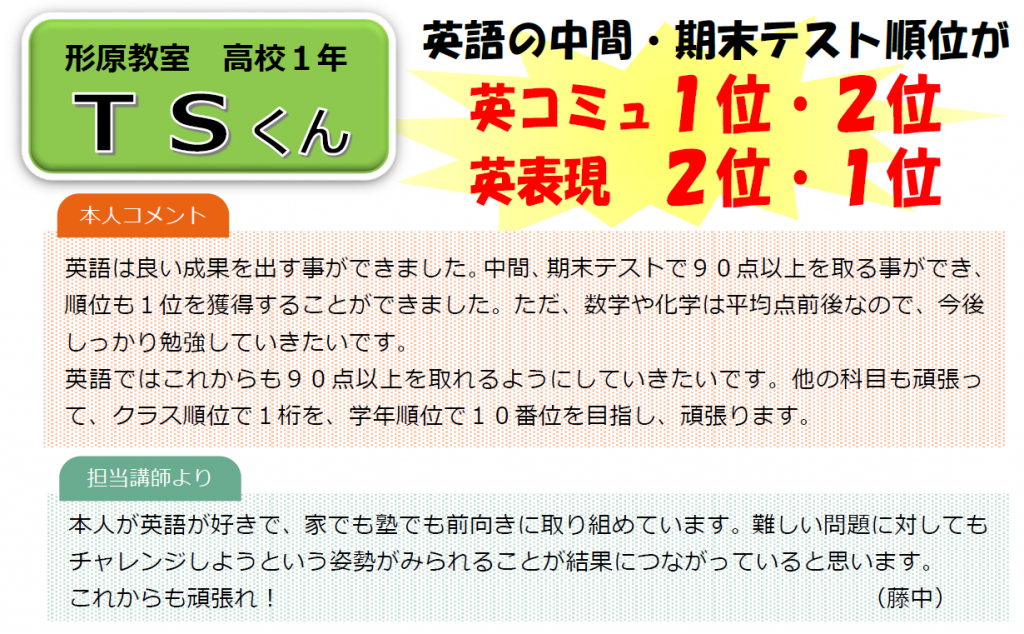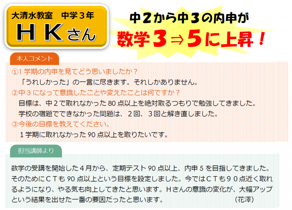 1学期の間に成長できた!目標に届いた!という生徒の声を何名かご紹介します。