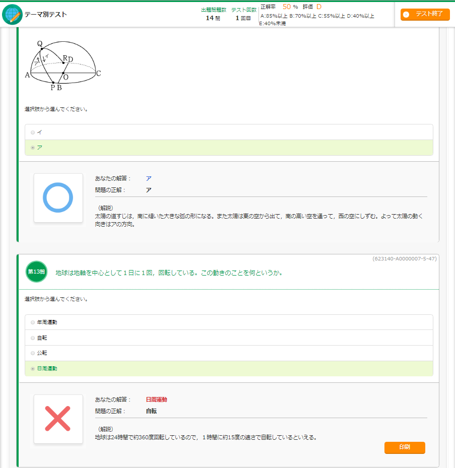 その正解率がA~Eで判定されるので、A(正解率85%)になるまで行うことで、定着度もアップします