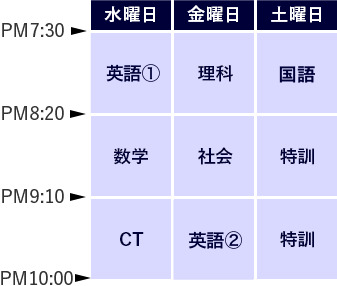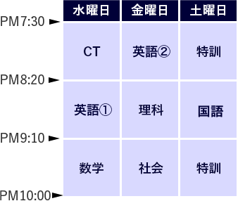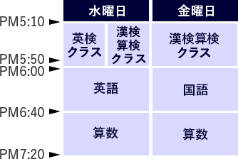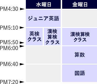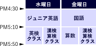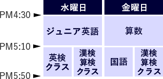 土曜日を除く週2日コースもあります。(月額受講料は正規料金・兄弟割引料金から5,500円引きになります。)